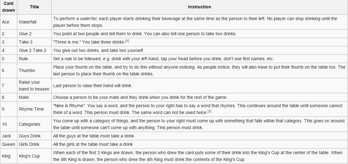 Here’s how you do it, everytime you pick a card, you have to do what the list below says. This might make you drunk and that’s even a better way to play.