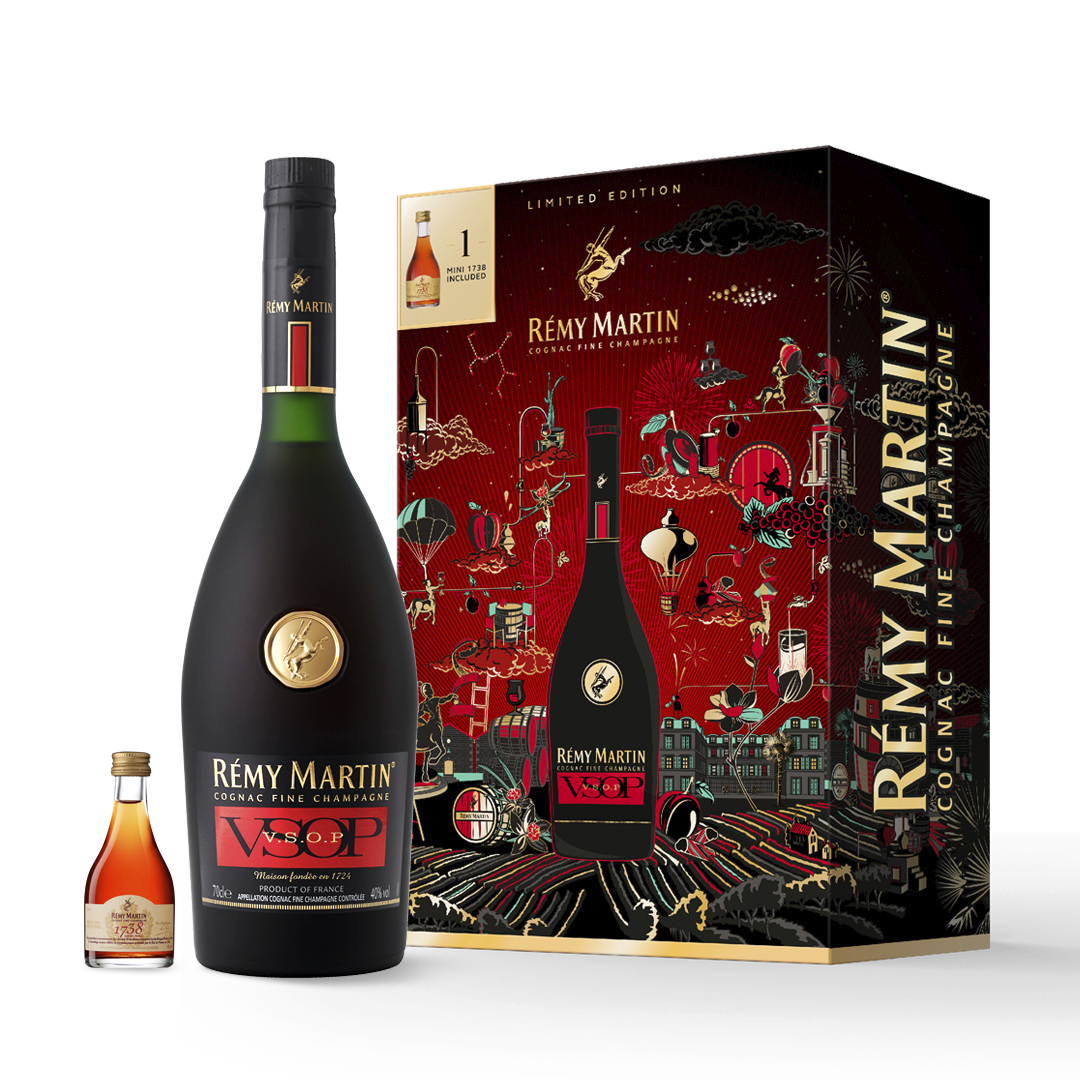 Few pleasures surpass the gift of an iconic Rémy Martin VSOP : a perfect harmony of powerful and elegant aroma that lends itself to the art of cocktails, showcased in a spectacular Odyssesy Gift Box along with a miniature (5cl) bottle of 1738 Accord Royal. Embodying he signature style and generosity of the house, each box comes with a QR code that grants access to a fully immersive experience where curious explorers will discover a world of tasting notes, the ultimate recipe for a Remy Ginger cocktail and how to create the perfect food pairing : vanilla macaron and gravelax salmon