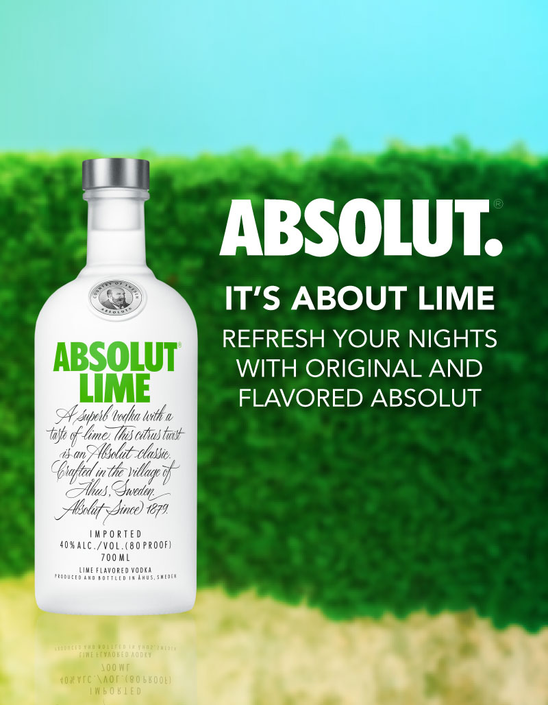 Absolut Lime is the latest addition to the core range of flavors. An instant classic, this citrus sibling arrives almost 30 years after the launch of Absolut Citron. With its fresh, balanced taste of natural Lime flavor and iconic frosted bottle, Absolut Lime perfectly complements the range as a key ingredient in many of today’s classic drinks with a refreshing twist.