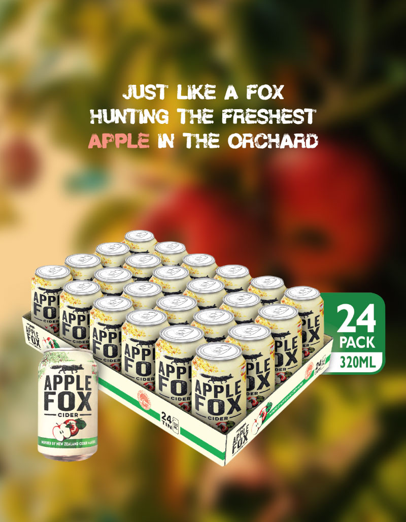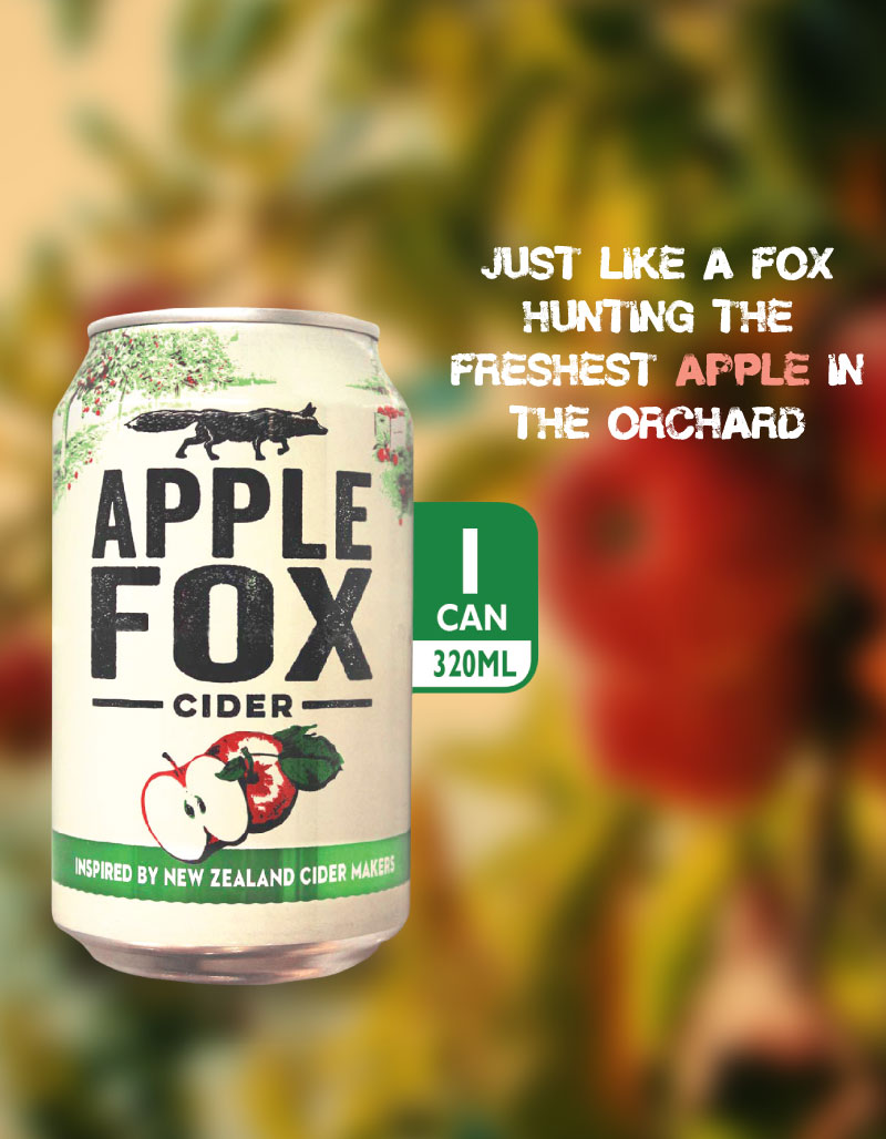 Inspired by New Zealand cider makers, Apple Fox uses the best-kept secrets of cider making in creating a distinct, refreshing smooth drinking experience, served over ice. Stealthy by nature, the fox has been known to sneak into orchards to hunt for delicious, juicy apples. Apple Fox is stepping in using our wily friends’ favourite fruit to craft great tasting apple cider.