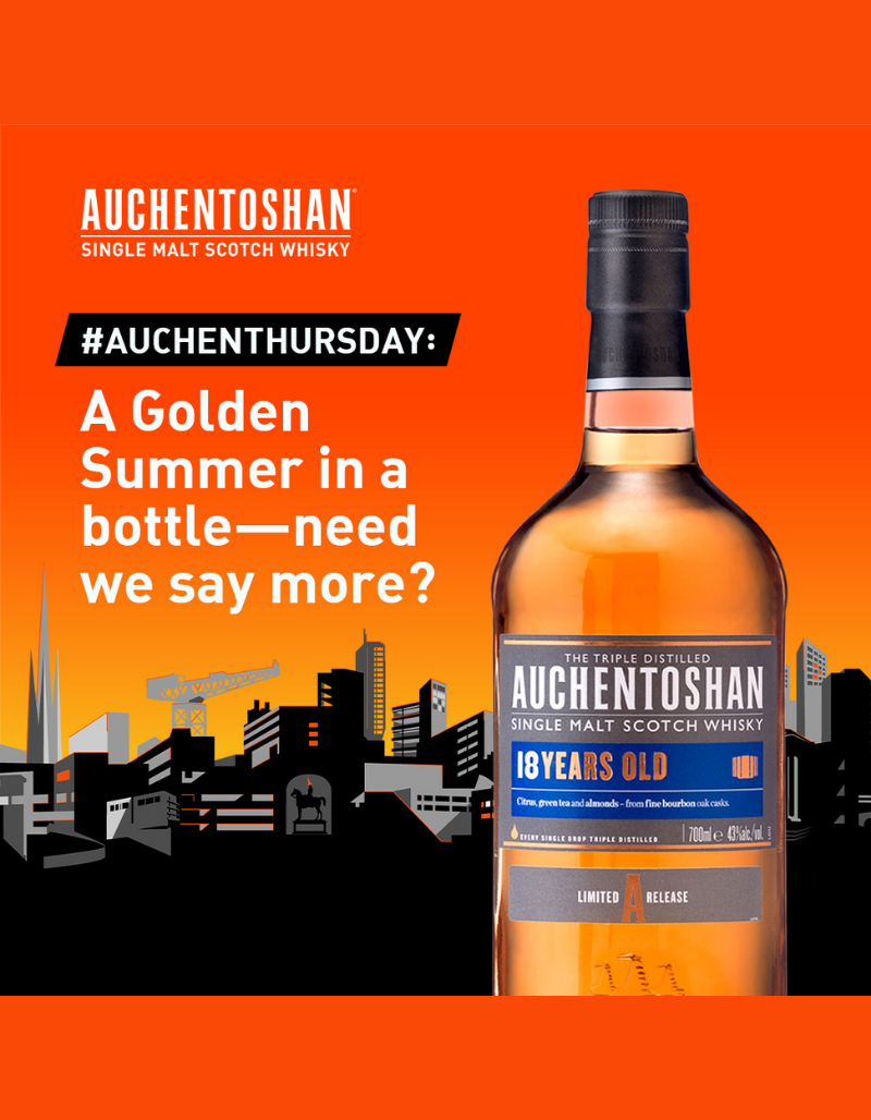 Triple distilled and matured in American bourbon oak for over eighteen years. The result: a refreshing Lowland single malt whisky with the added infusion of ripe citrus and green tea, the warmth of toasted almonds and the signature smooth, delicate, Auchentoshan taste.