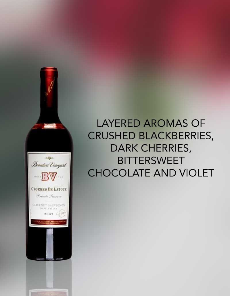 Beaulieu Vineyard Private Reserve Georges de Latour Napa Valley Cabernet Sauvignon has unctuous fruit character and dense structure. Hugely complex, the wine reveals a broad spectrum of briary blackberry, black cherry and currant notes, with nuances of violet and bittersweet chocolate. Muscular tannins support the plush, expansive palate, while impeccably balanced acidity adds vibrancy.