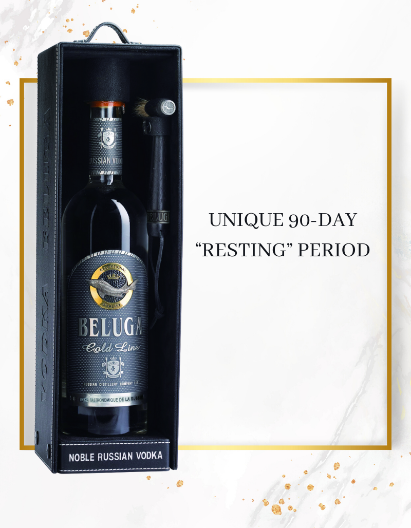 Each bottle comes with its own serial number and a cork stopped with sealing wax. To clean out the sealing wax, each bottle of Beluga Gold Line comes with an elegant hammer and brush, emphasizing 100% authenticity and individuality of this limited series vodka with an imposing attitude.