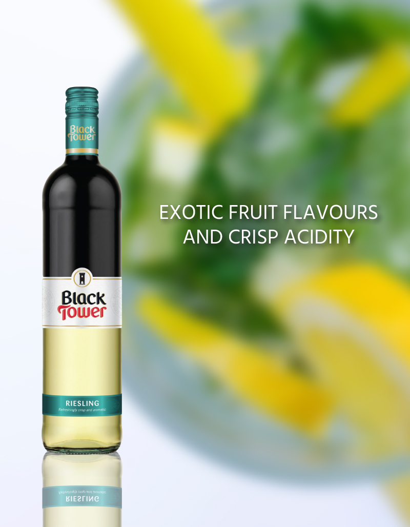Black Tower is Germany's most widely exported branded wine. With its fresh appealing style it meets the needs of today's ever more discerning consumer. A combination of selected grapes from prime wine-growing areas and careful vinification ensure Black Tower wines are always enjoyable. Riesling is Germanys most well known grape variety all over the world. Its exotic fruit flavours and crisp acidity is unprecedented within the wine world. Enjoy Black Tower Riesling as a flagship of German Riesling art.
