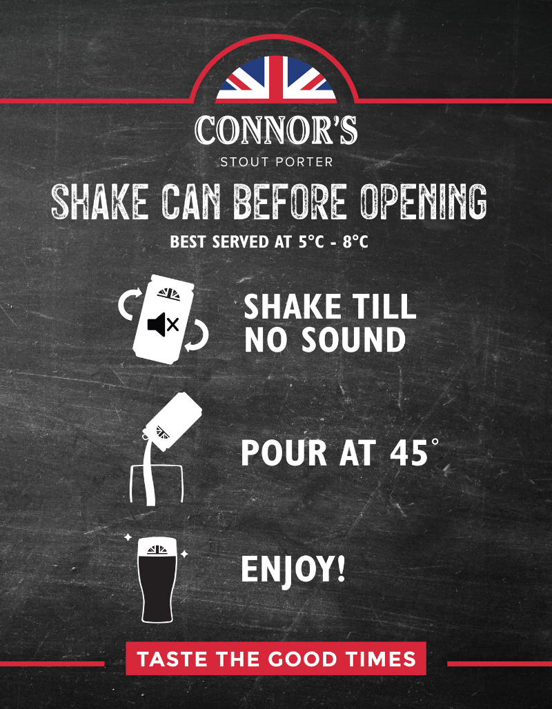 Inspired by the British stout recipe from the 1700s, our unique blend of four malts delivers a rich flavour and notes of coffee for a perfectly balanced taste that’s just made right. In April 2021, Connor's launched its premium draught stout now available in cans.