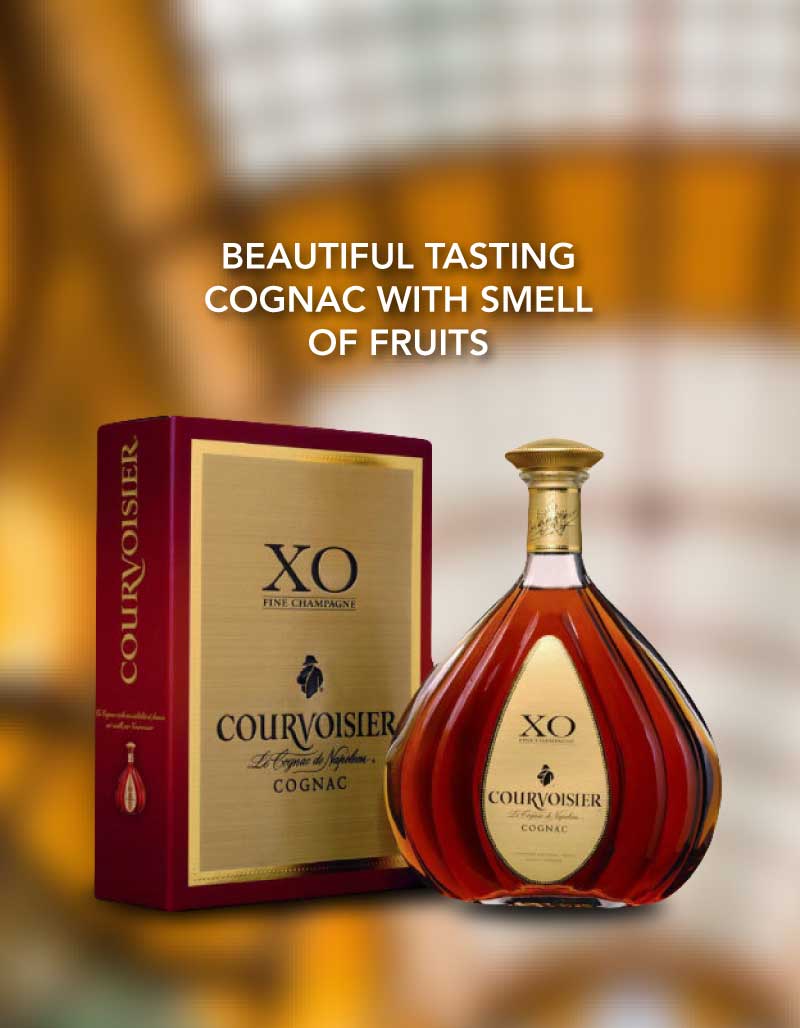 Courvoisier X.O. Fine Champagne is a blend of old Grande Champagne and Petite Champagne eaux-de-vie, at the top of their force, selected by the Cellar Master of Courvoisier, blended to a passionate X.O. It is great for a Maître de Chai to marry Grande and Petite Champagne eaux-de-vie when they are at their best.