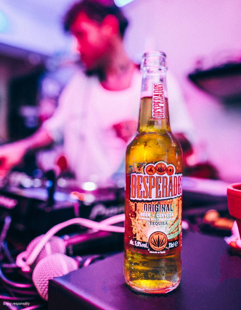 Desperados is the world's first Tequila Flavoured Beer. A distinctive combination of full bodied lager with a kick of Tequila flavour. A light & refreshing taste profile balanced with spicy and lemony notes for sweetness.