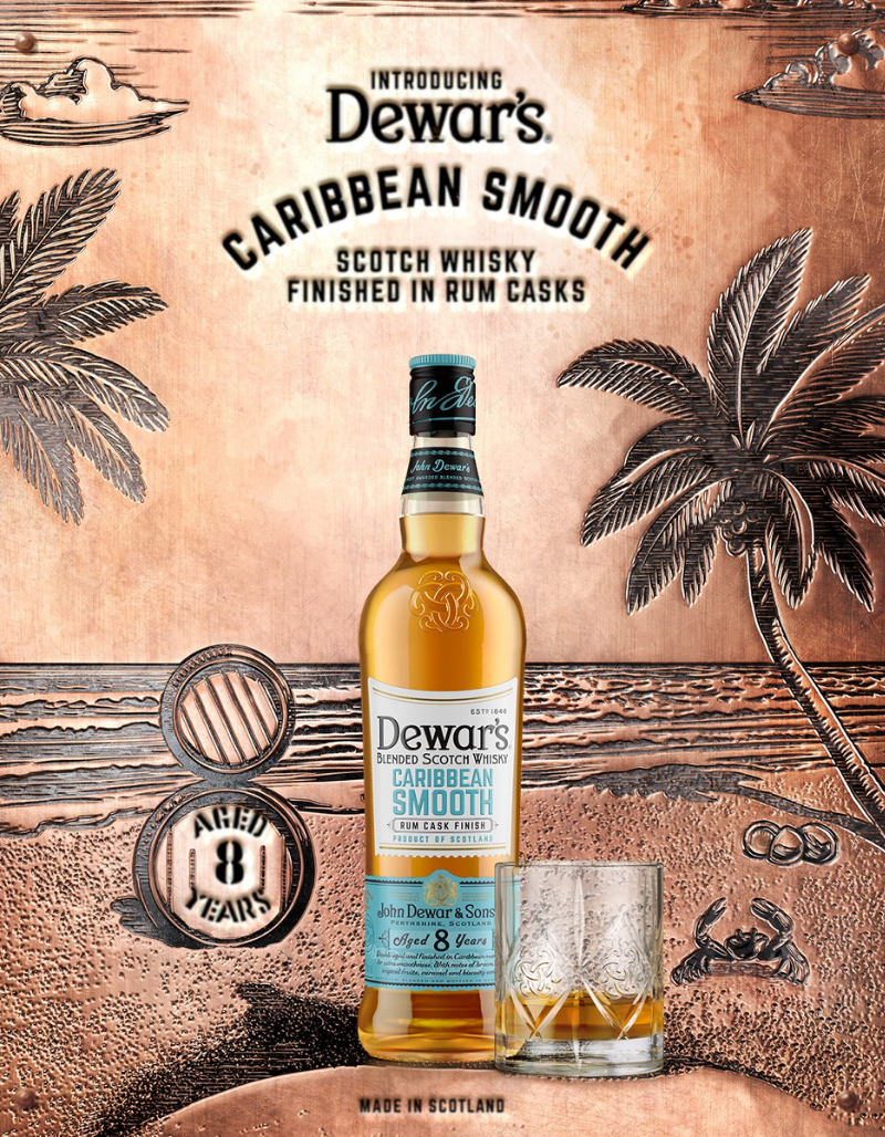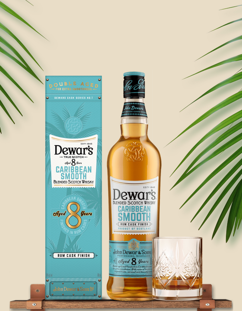 Dewar’s Caribbean Smooth is a blend of up to 40 single malts and grain whiskies that have been aged for at least 8 years and then double aged, before being finished in ex Caribbean rum casks for up to six months, creating a Caribbean smooth finish.