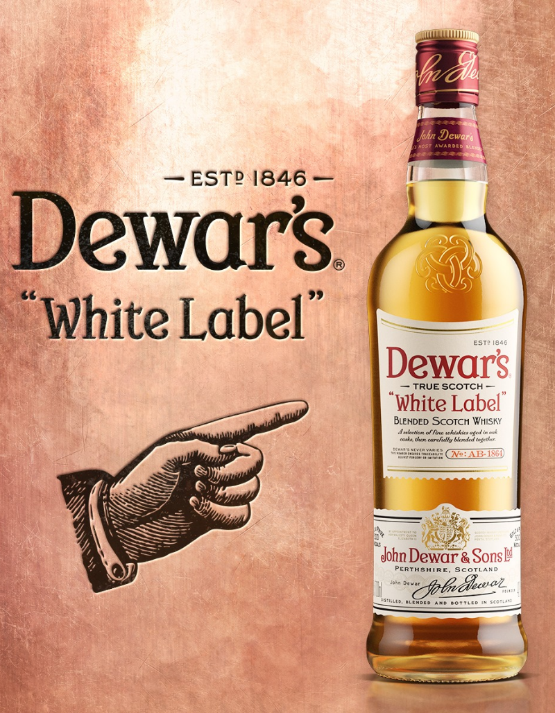Dewar's White Label Blended Scotch Whisky was created in 1899 and contains around 40 different whiskies in the blend. The full bodied scotch has rich notes of honey, apple, fudge, vanilla, and wood with a subtle smokiness.