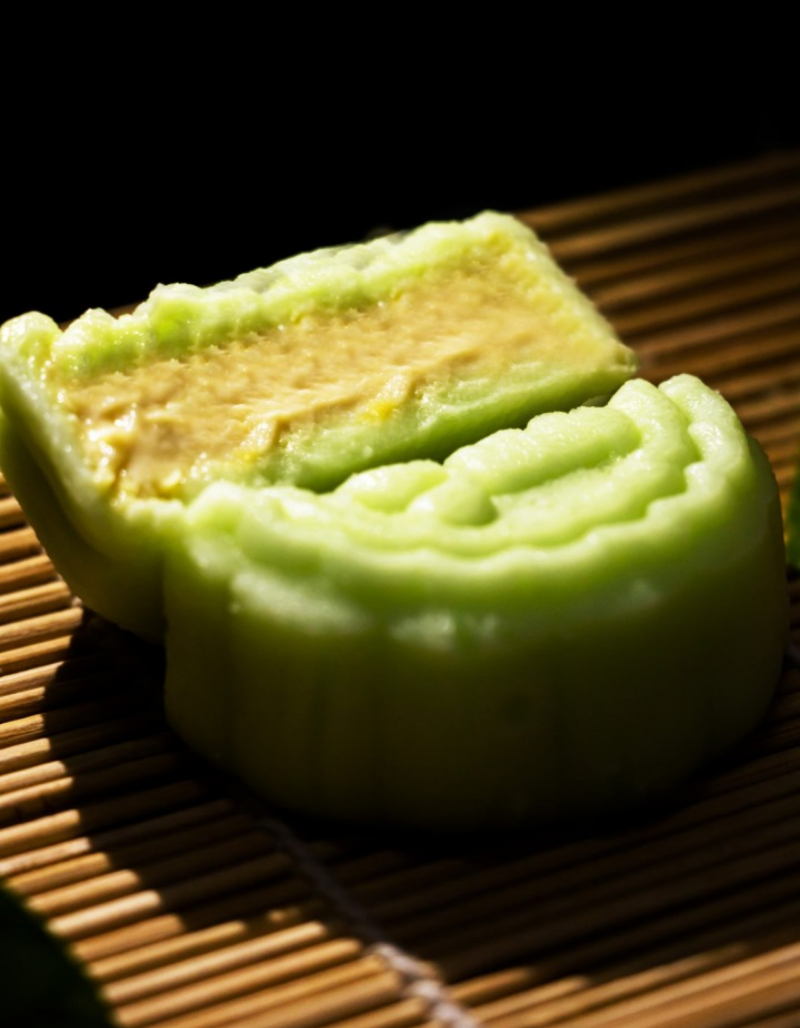 Snowy Skin is pandan flavour and fillings are made from 100% Black Thorn and Musang King durian pulp. A total indulgence!