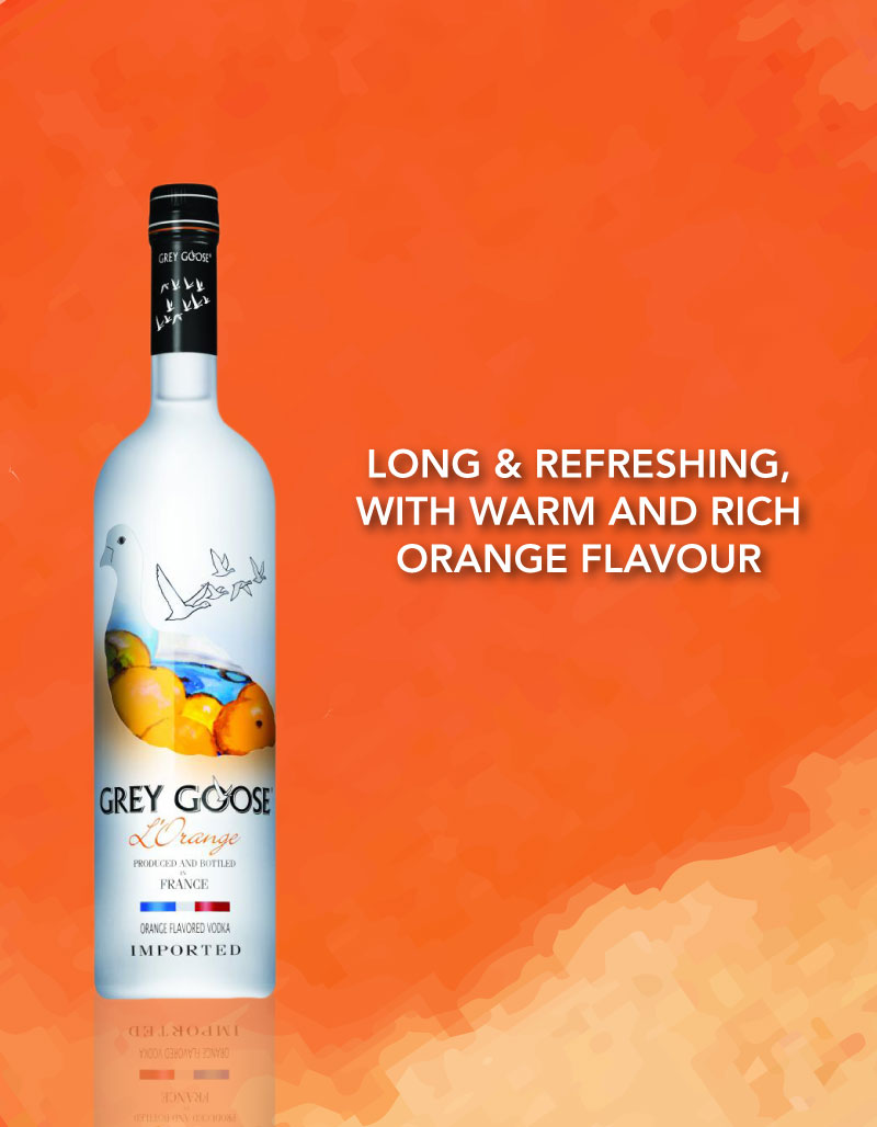 GREY GOOSE® L’Orange Flavored Vodka is made from freshly picked oranges harvested year round. As with the superior bread making wheat used to make GREY GOOSE® Vodka, Maître de Chai François Thibault insists on only the finest oranges to produce the best possible orange vodka. Essential oils from the fresh fruit are mixed with the wheat spirit and distilled to achieve the signature vibrant citrus character of GREY GOOSE® L’Orange Flavored Vodka.
