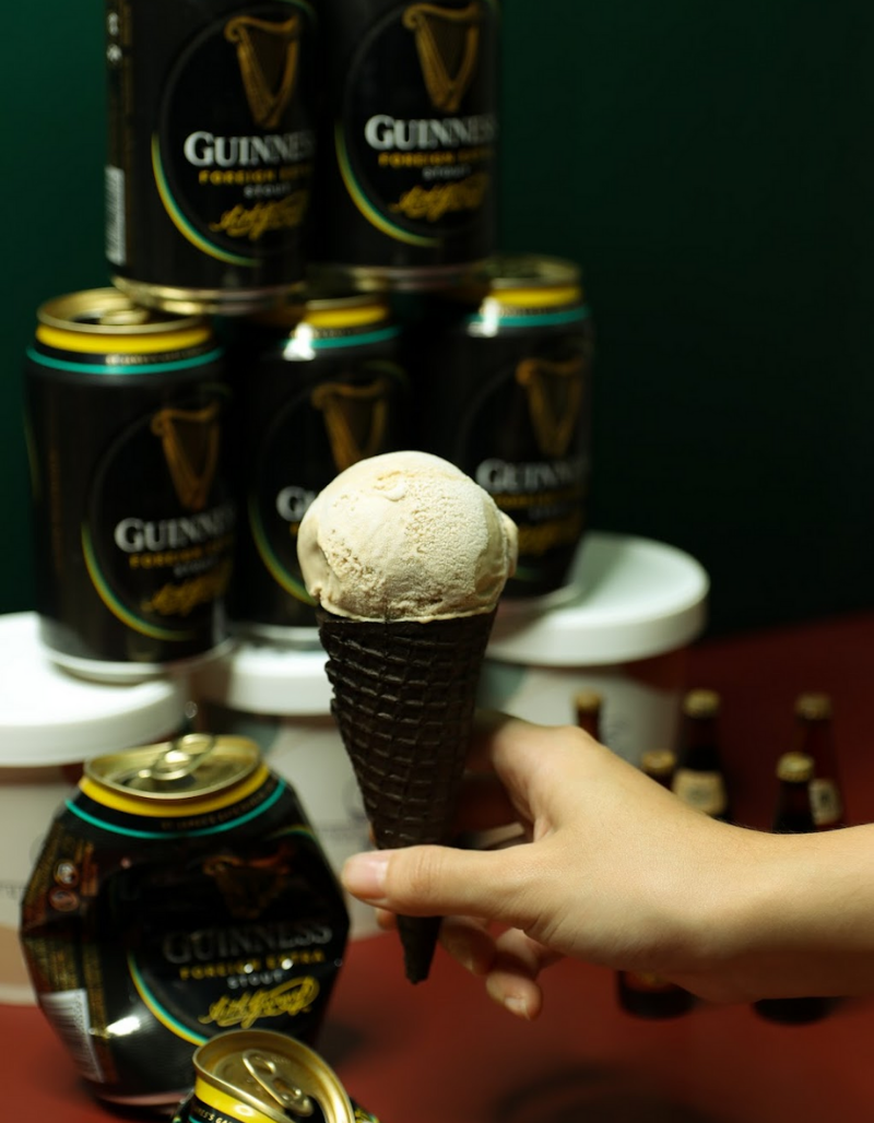 We start off with our cream base ice cream followed by adding in reduced Guinness Stout for that extra punch-in-the-face flavour!