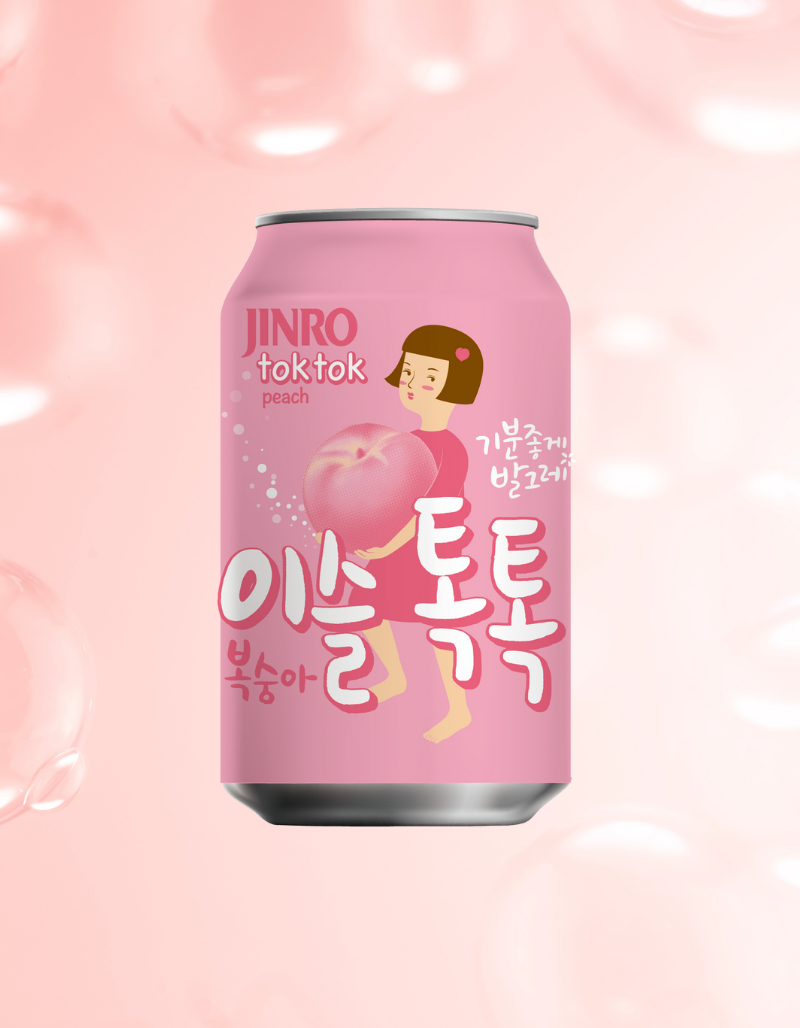 Enjoy Jinro TokTok Peach that will make you feel awesome. With a mouthful of sparkling carbonated peach flavor and a low alcoholic content of 3%, Jinro TokTok Peach can be enjoyed by everyone at anytime.