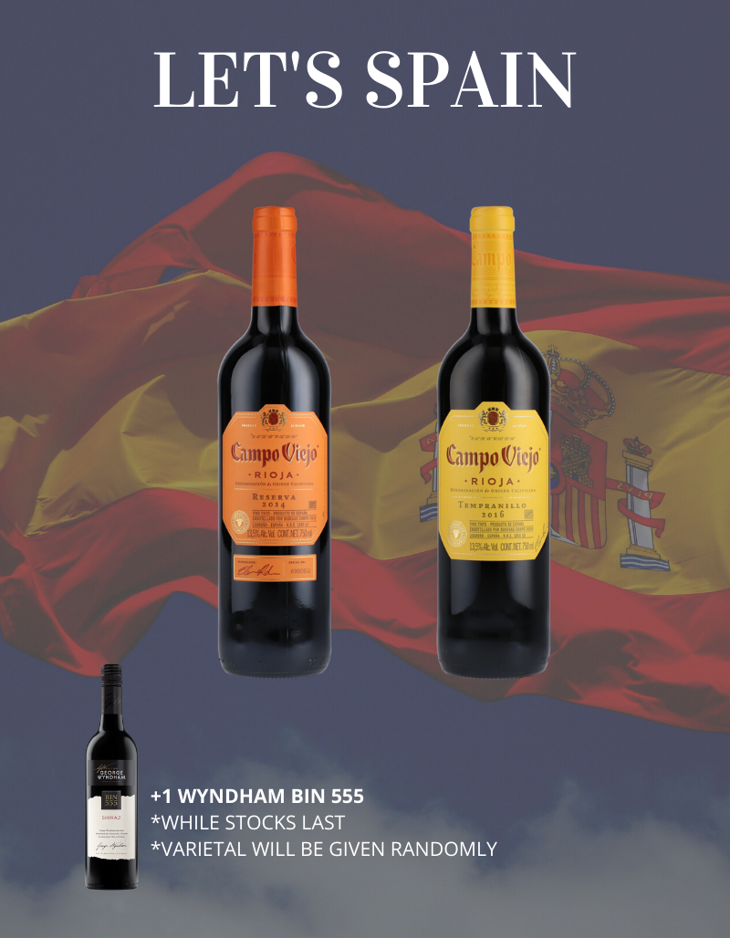 Package I : 1 x Campo Viejo Tempranillo + 1 x Campo Viejo Reserve (FOC 1 x Wyndham Bin 555)