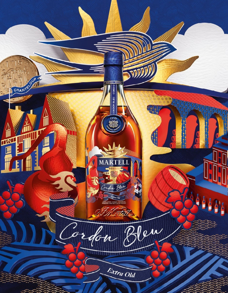 About “From Cognac to The World” Limited Edition : This Limited Edition evokes the journey of House icon Martell Cordon Bleu through the trajectory of the sun from East to West – as unstoppable as the flight of the swift, the historic emblem of Maison Martell, which soars over land and sea, knowing no frontiers. Ever since 191, from its birthplace in Cognac, Martell Cordon Bleu has radiated to the four corners of the globe, transcending trends and extending far beyond the world of Cognac. This original and richly detailed design offers a joyful, contemporary interpretation of key symbols of Maison Martell’s heritage, terroir and savoir-faire, epitomised by Martell Cordon Bleu.