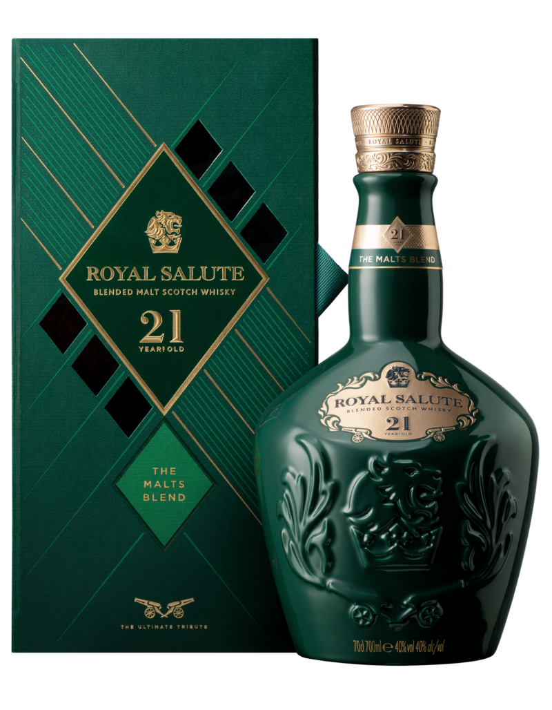 The 21 Year Old Malts Blend is the first blended malt from Royal Salute and was crafted with more than 21 precious single malts from the 5 regions of Scotland. The result is an indulgent and profound Scotch whisky bursting with notes of orchard fruits, enriched by subtle spices and housed in a beautifully crafted porcelain flagon.