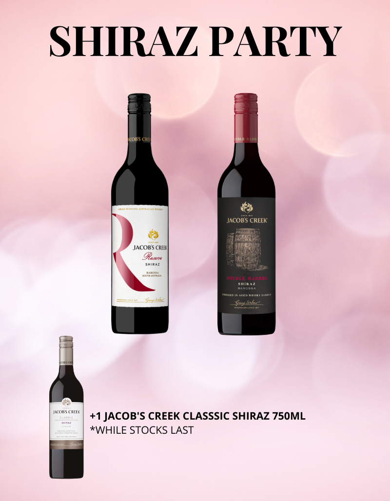 Package F : 1 x Jacob’s Creek Reserve Shiraz + 1 x Jacob’s Creek Double Barrel Shiraz (FOC 1 x Jacob’s Creek Classic Shiraz)