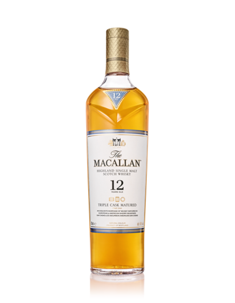 The Macallan Triple Cask Matured 12 Years Old forms part of our Triple Cask Matured range; a series of single malt whiskies crafted in a triple cask combination of European and American sherry seasoned oak casks and American ex-bourbon oak casks. This complex combination of oak casks delivers an extraordinarily smooth and delicate character, full of citrus fruits, vanilla and fresh oak.