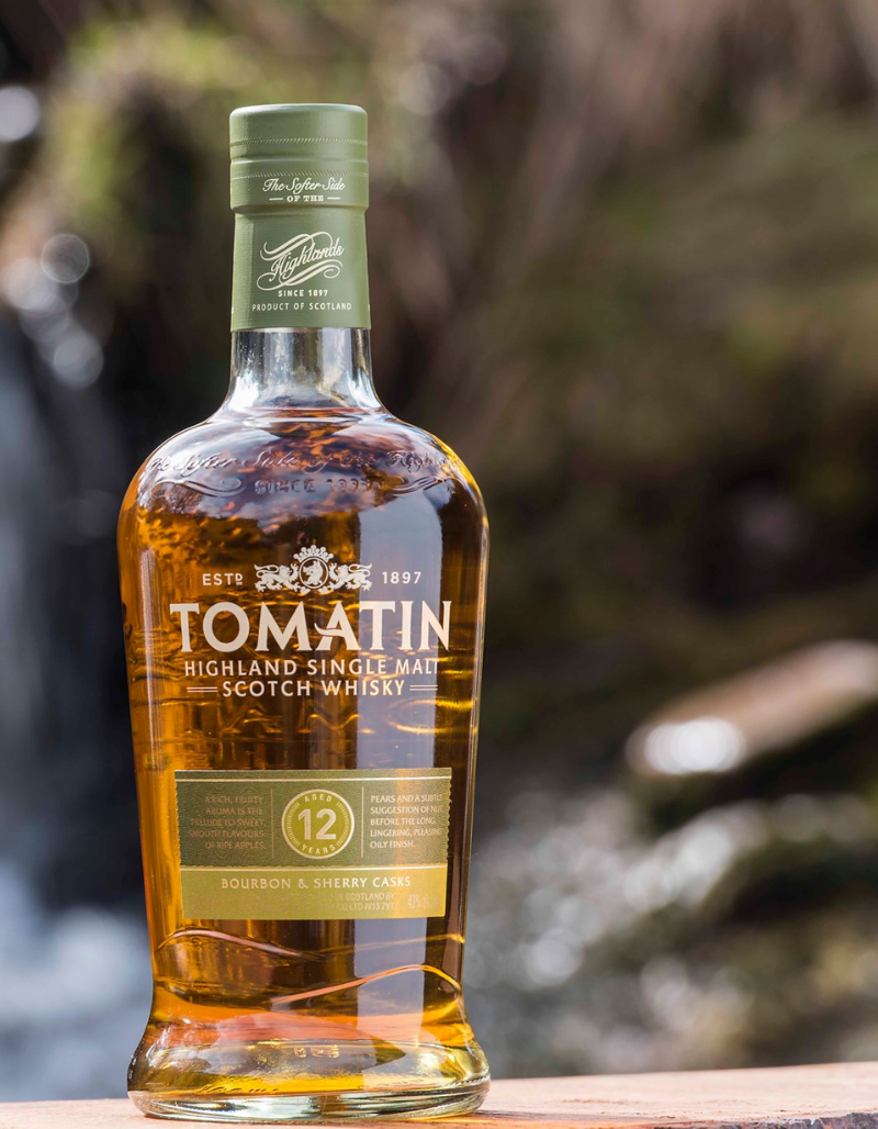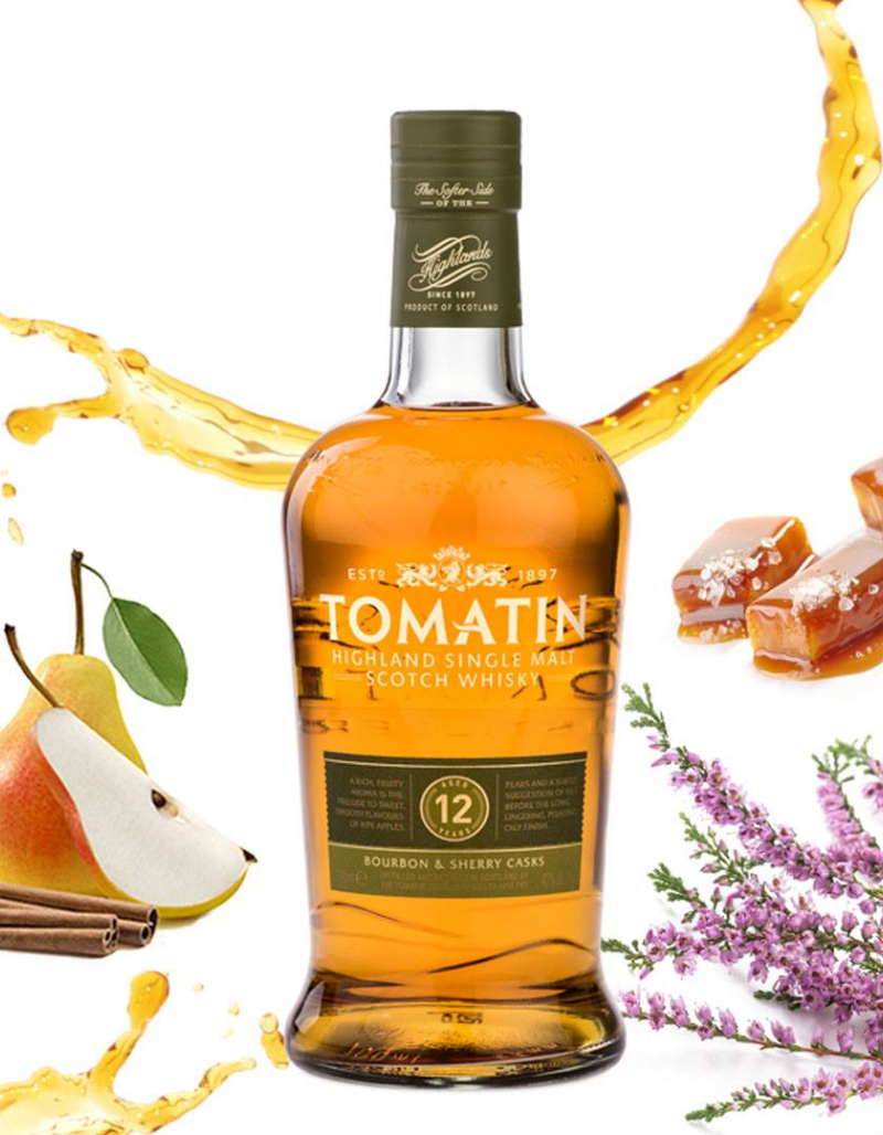 The Tomatin 12 Year Old is classically smooth, having been matured in traditional Scotch Whisky, ex-Bourbon and ex-Spanish Sherry casks. Aromas of wild heather, pine and cedar soon sweeten to reveal notes of crème caramel with apples, pears and mango before a full bodied and buttery finish