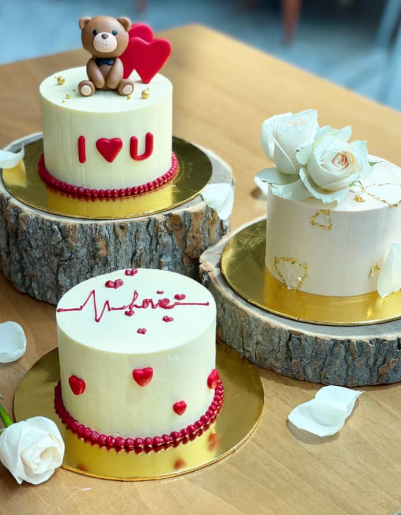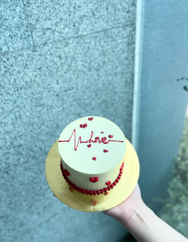 Specially crafted with lotsa Love: Vanilla Buttercream cake sandwiched between pillowy layers of whipped cream and jarred sweet cherries & strawberry jam.
