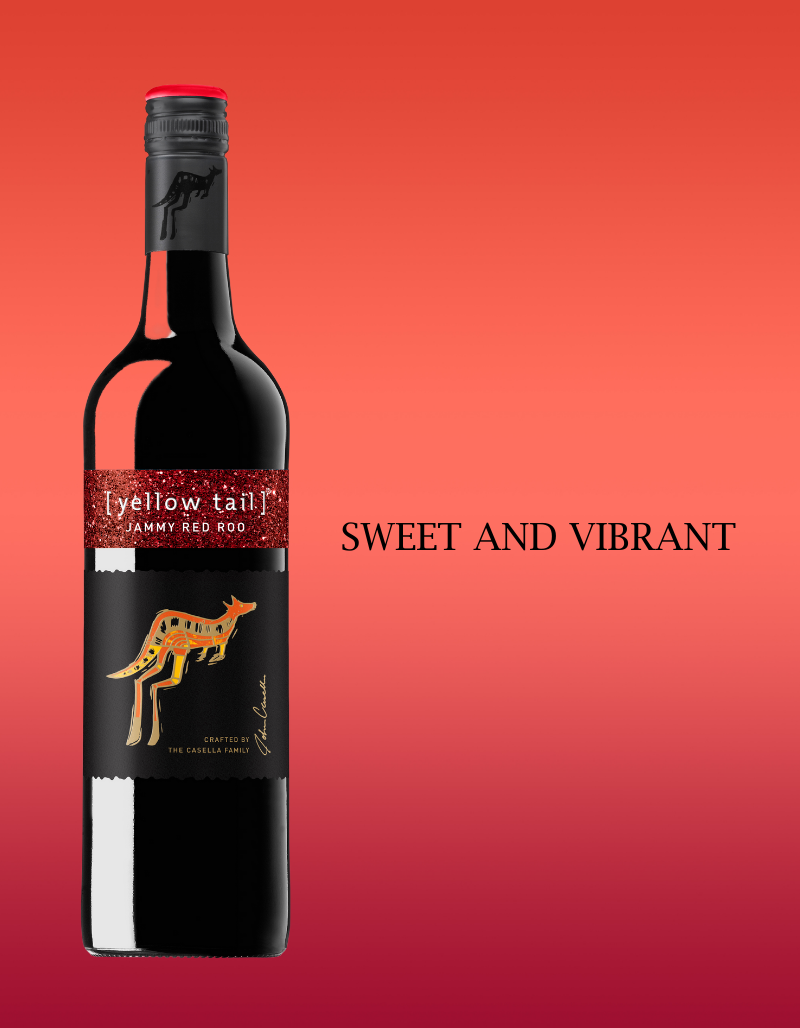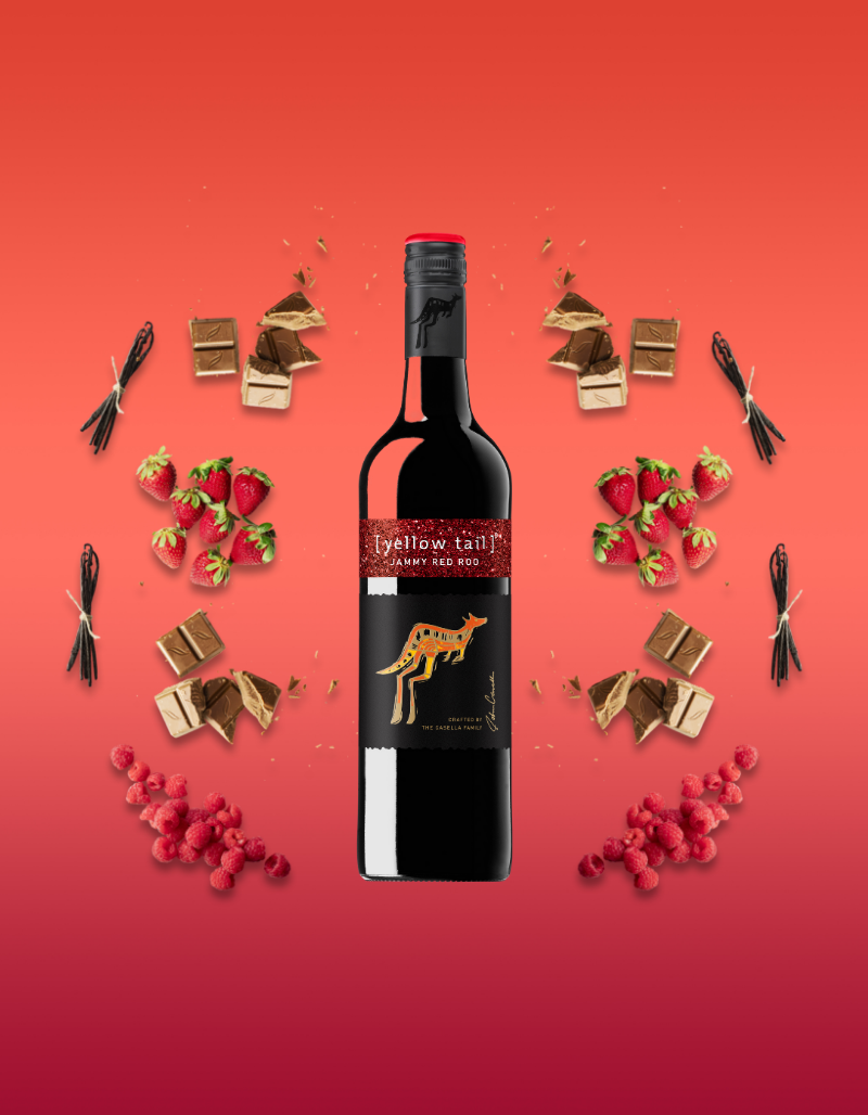Made from a blend of Shiraz, Cabernet Sauvignon, and other red varietals, [yellow tail] Jammy Red Roo is full of fruit aromas and flavours.