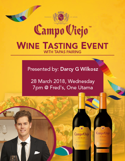 Enjoy a sensational wine tasting experience worth over RM120 accompanied by Mr Wilkosz's personal commentary on 2 international award-winning Campo Viejo wines.